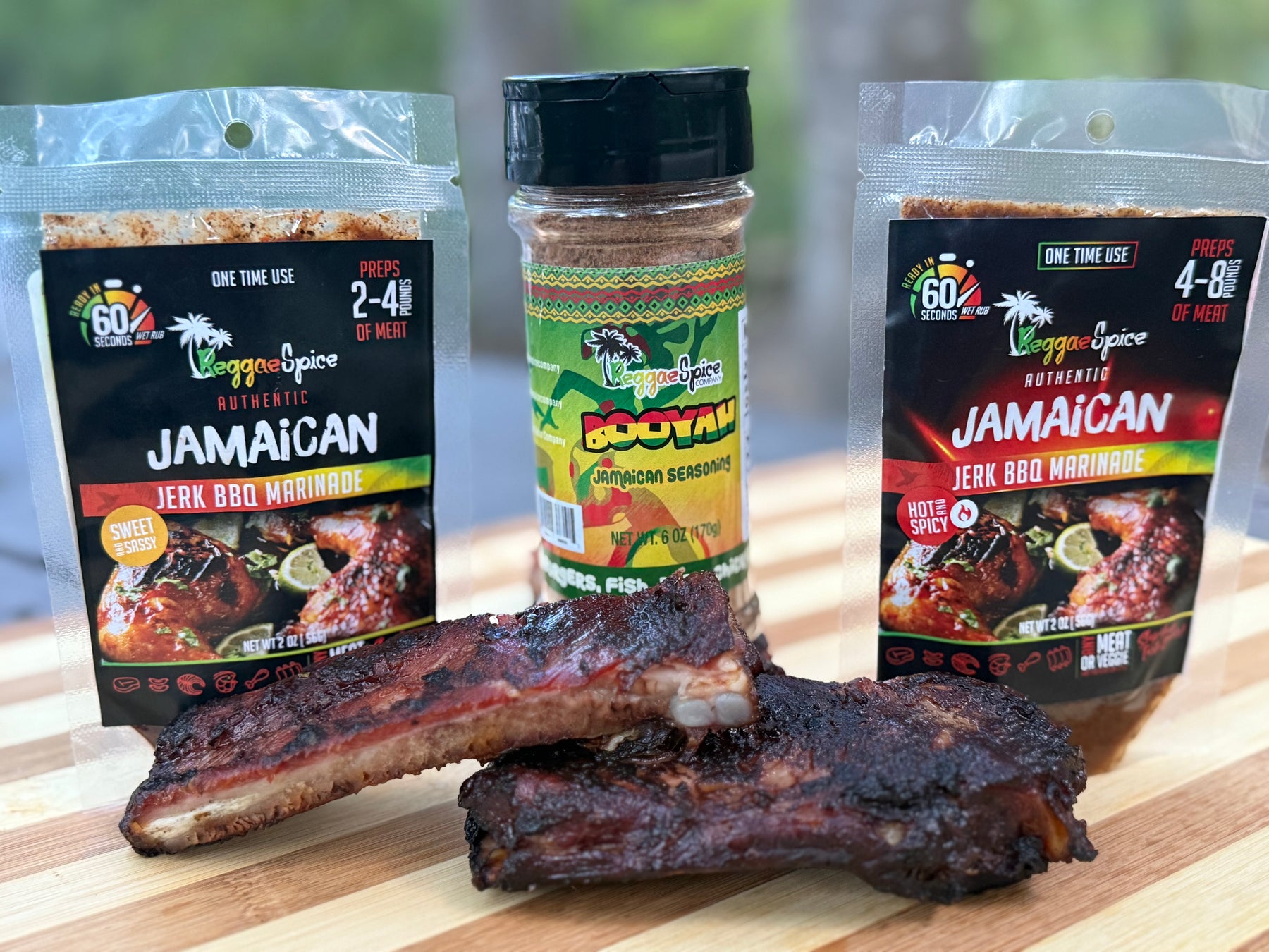 Presenting our 3 amazing foundation products all together in 1 pack! You'll receive the hot and spicy and sweet and sassy JAMAICAN PACK MARINADE SEASONINGS, plus BOOYAH, our famous Jamaican dry seasoning!